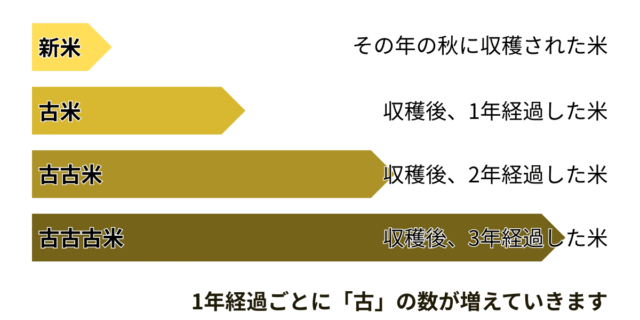 令和6年10月に収穫したお米なら、令和7年10月からは「古米」の扱いになります。