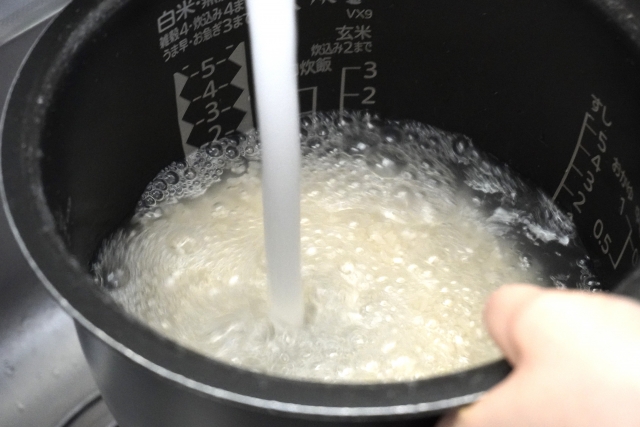 通常のお米(精白米)は、炊く前に2〜3回ほど水で洗い、表面のぬかを落とす必要があります。